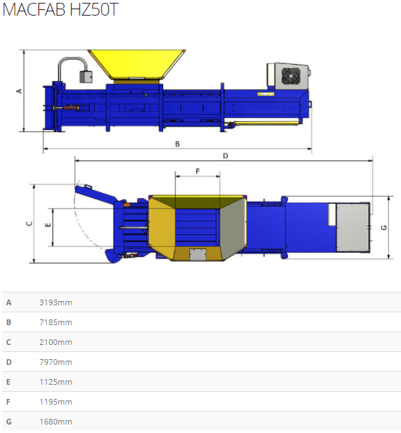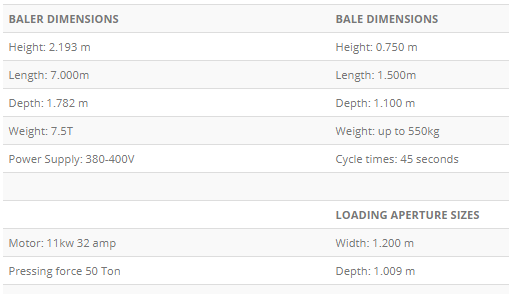 - A semi-Automatic Horizontal Baler with 50 Ton compaction force.